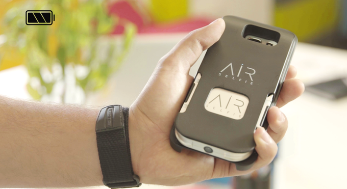 Take AirSelfie out of its cover and launch it from your phone using the AirSelfie app available for iOS and Android.